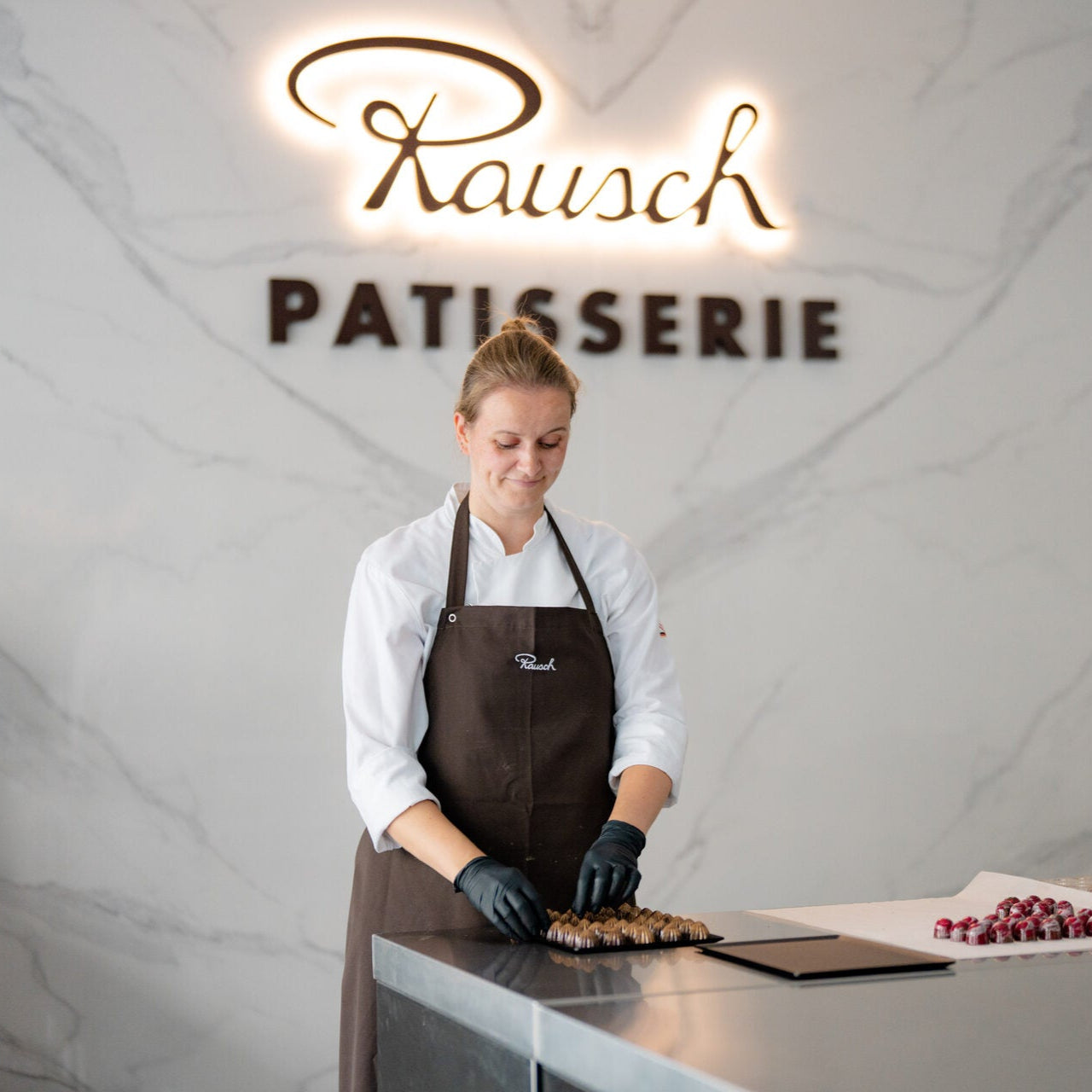 Our new live patisserie awaits you on the 1st floor of the Chocolate House. Watch how our patissiers create unique compositions by hand with precision - and enjoy the