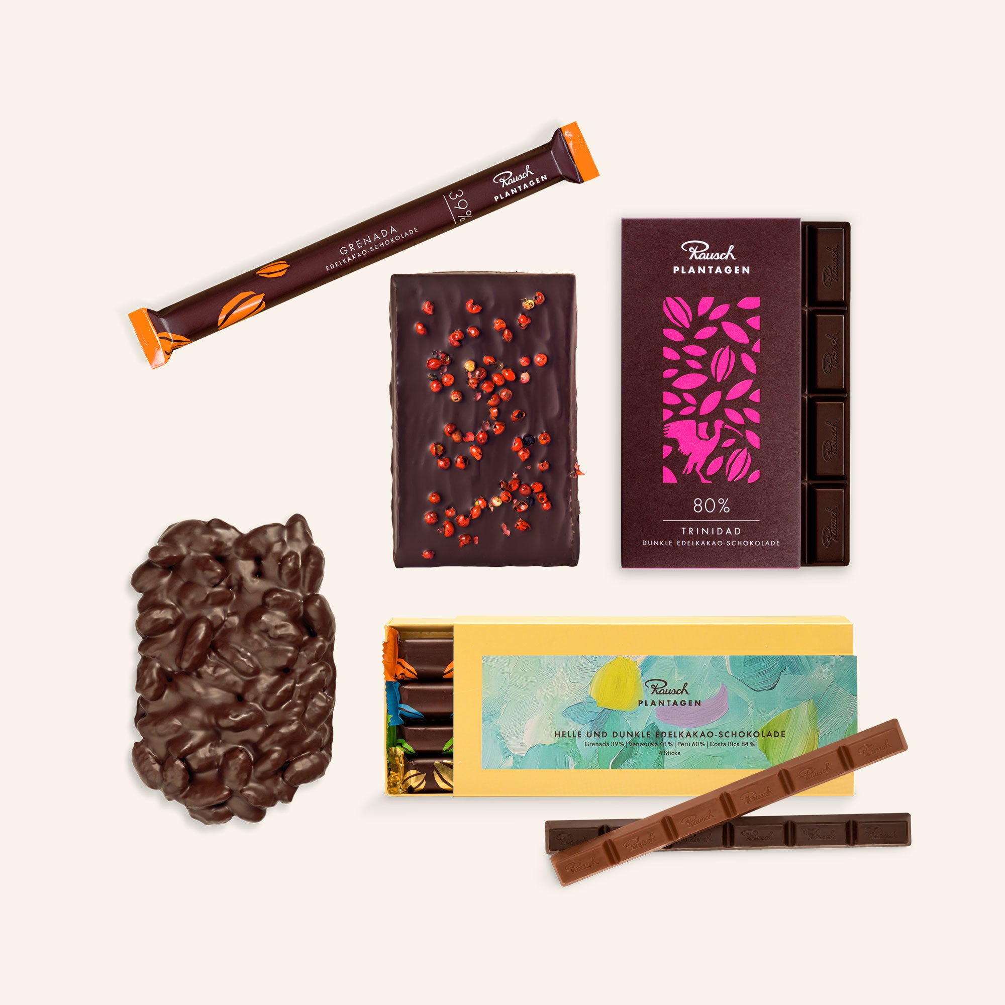 In fünfter Generation vereint Rausch handwerkliche Präzision mit dem Mut zur Erneuerung. Verarbeitet werden ausschließlich ausgewählte, naturreine Zutaten – mit dem Ziel, Schokolade nicht nur zu produzieren, sondern immer wieder neu zu interpretieren.